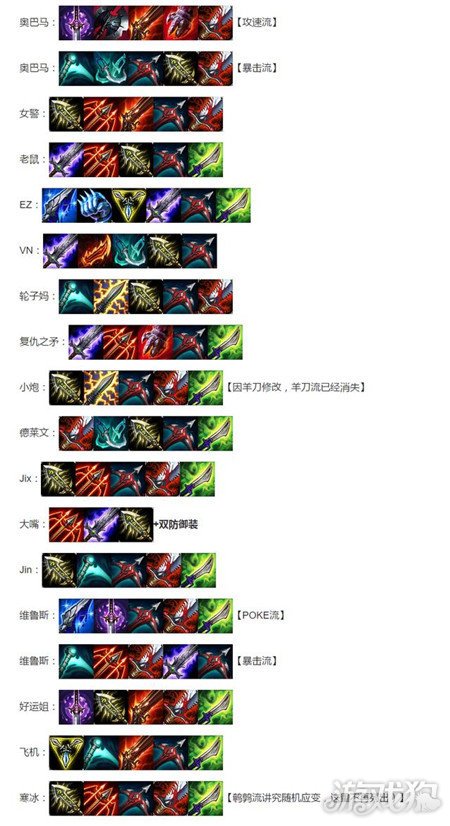 以上出装为笔者搜寻大量职业选手和高端RANK中的ADC玩家的出装中,总结出来的频率最高出装。不是固定或唯一出装,只是一个参考。